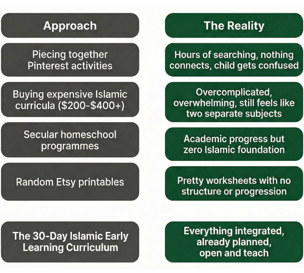 And worse? You're stuck choosing between teaching deen OR teaching academics - when deep down, you know they should be taught together.