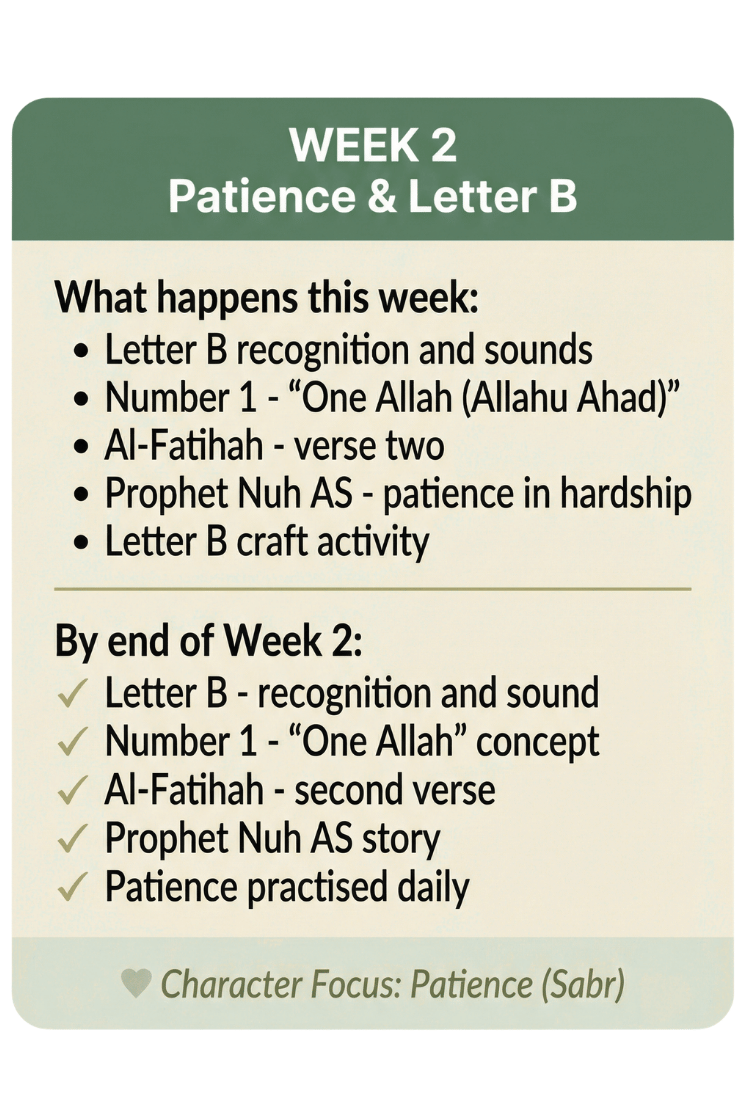 "I was spending hours every week on Pinterest searching for 'Islamic preschool activities' and piecing together worksheets. Now I just open the weekly plan and everything is RIGHT THERE. My daughter is learning her letters AND her deen at the same time. It's exactly what I needed."